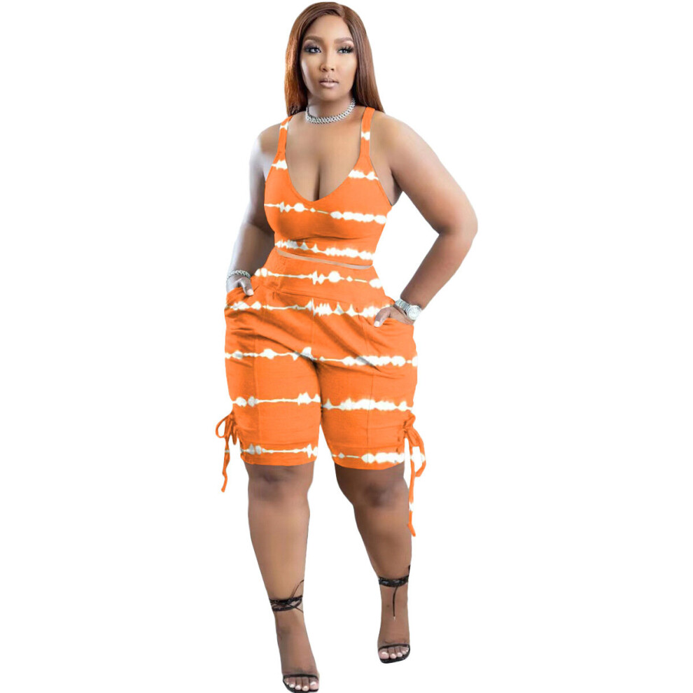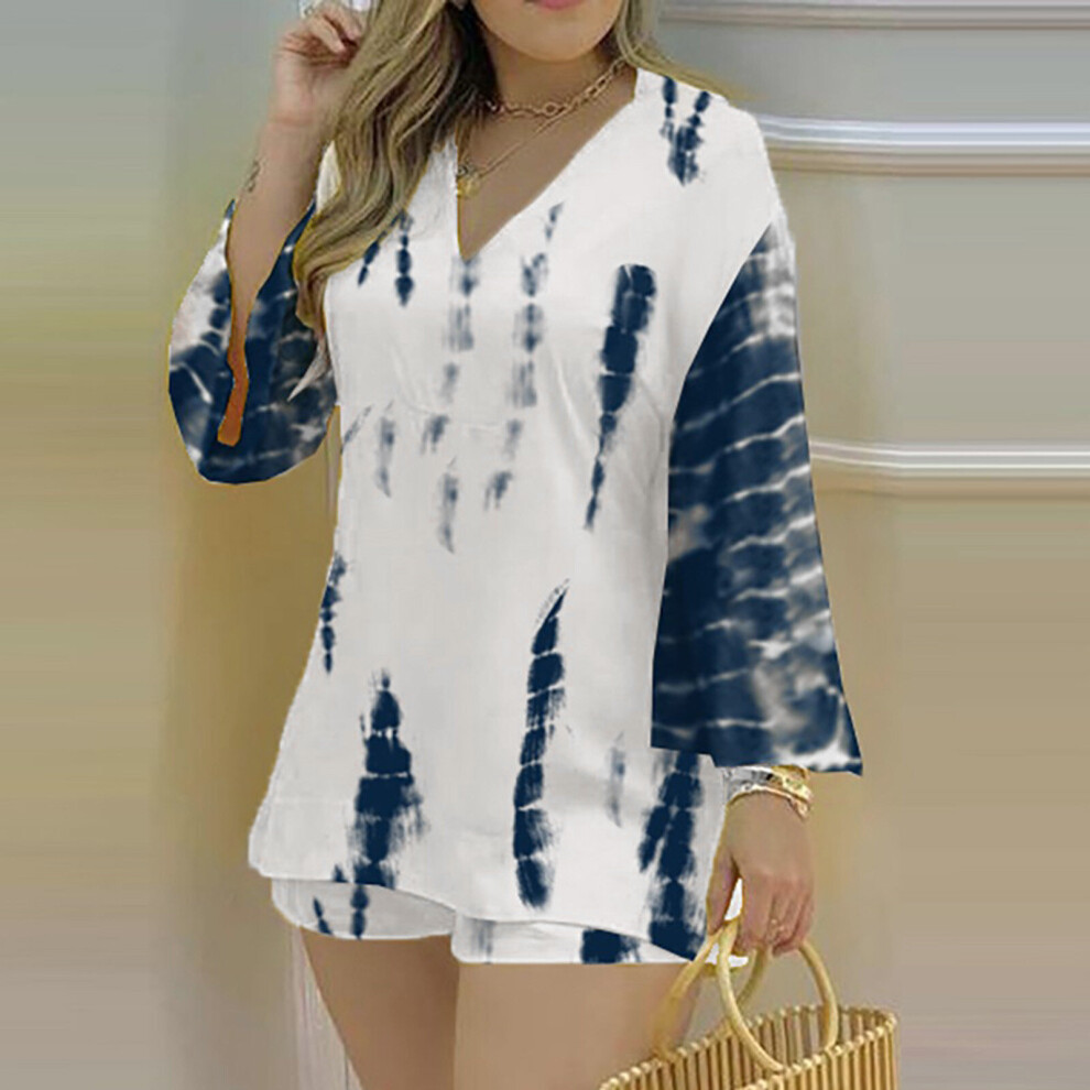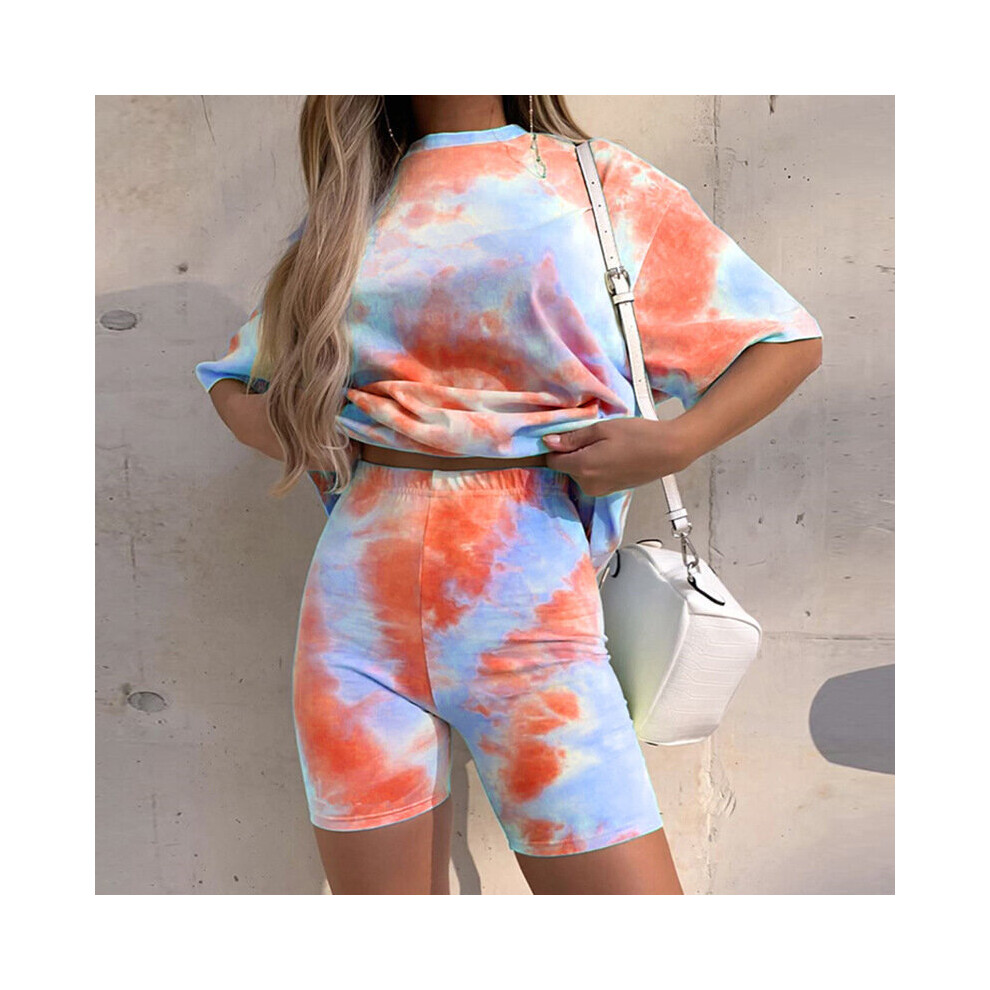 Spring Summer Women Two Piece Set Tie Dye Print Casual Sport T Shirt and Shorts Women Outfits