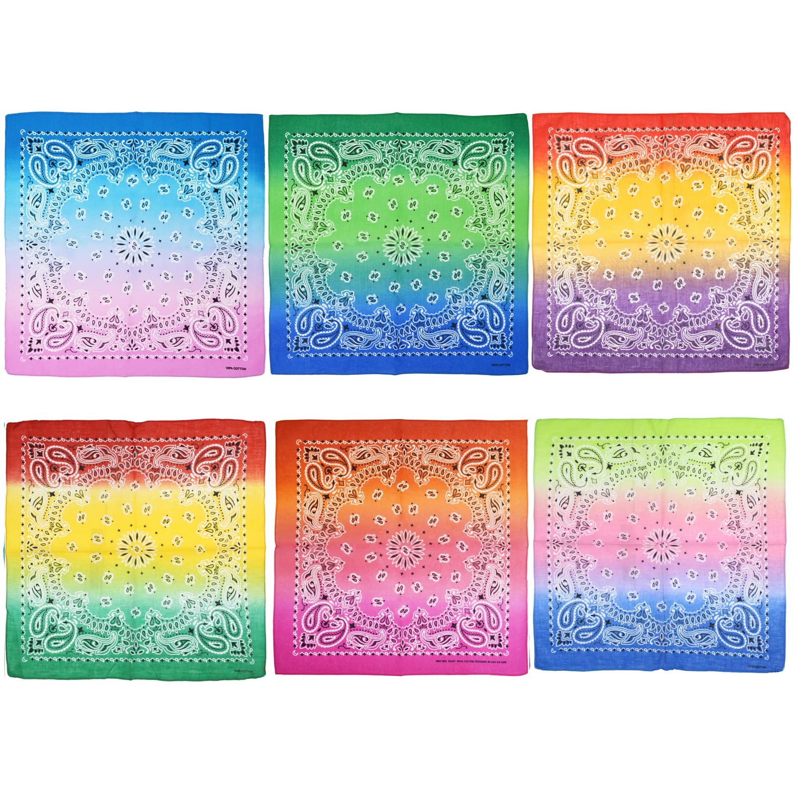 Set of 6 Paisley Bandana Set, Multi Colour Tie Dye Pattern, Retro Paisley Print,