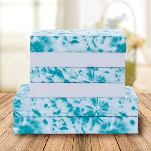 Elegant Comfort Luxury Soft Bed Sheets Tie Dye Pattern 1500 Thread Count Percale Egyptian Quality Softness Wrinkle and Fade Resistant (4-Piece) Bedding Set, Twin XL, Tie Dye Teal