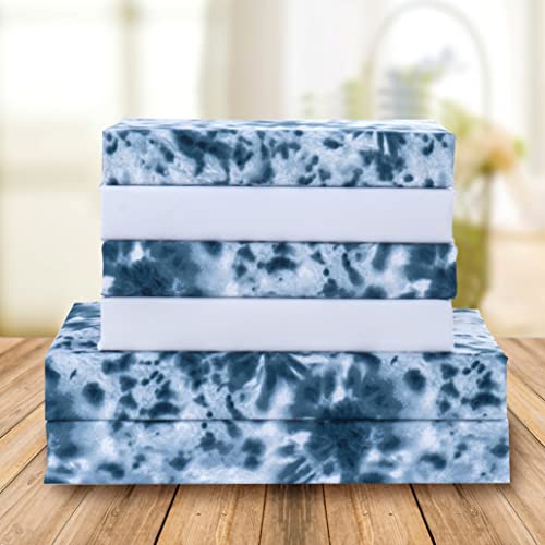 Elegant Comfort Luxury Soft 1500 Thread Count Egyptian Quality Pattern Wrinkle and Fade Resistant (6-Piece) Bedding Sheet Set, Twin, Tie Dye Blue