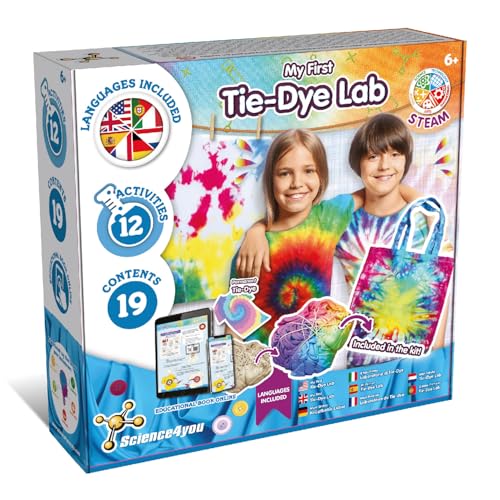Science4you My First Tie-Dye Lab – Tie-Dye t-shirt Kit for Kids, 12 Activities for Kids, Fashion Designer Kits for Girls, STEM Toys and Tie Dye Toys for 6+, Educational Gifts for Boys & Girls 6 7 8 9+