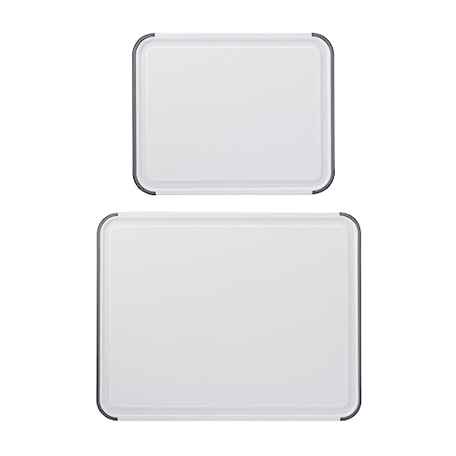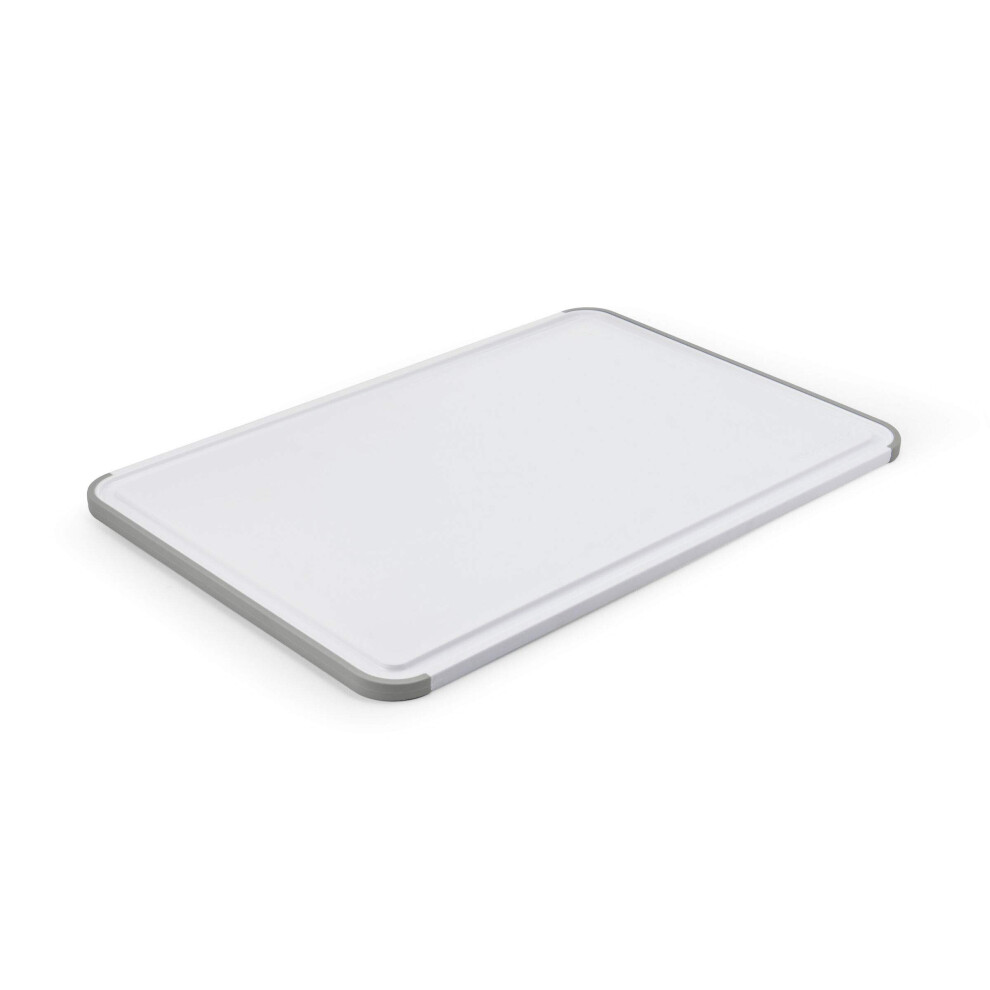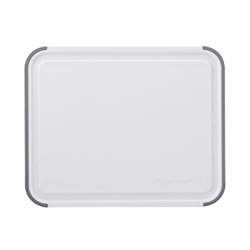KitchenAid Classic Plastic Cutting Board with Perimeter Trench and Non Slip Edges Dishwasher Safe 12 inch x 18 inch White and Gray