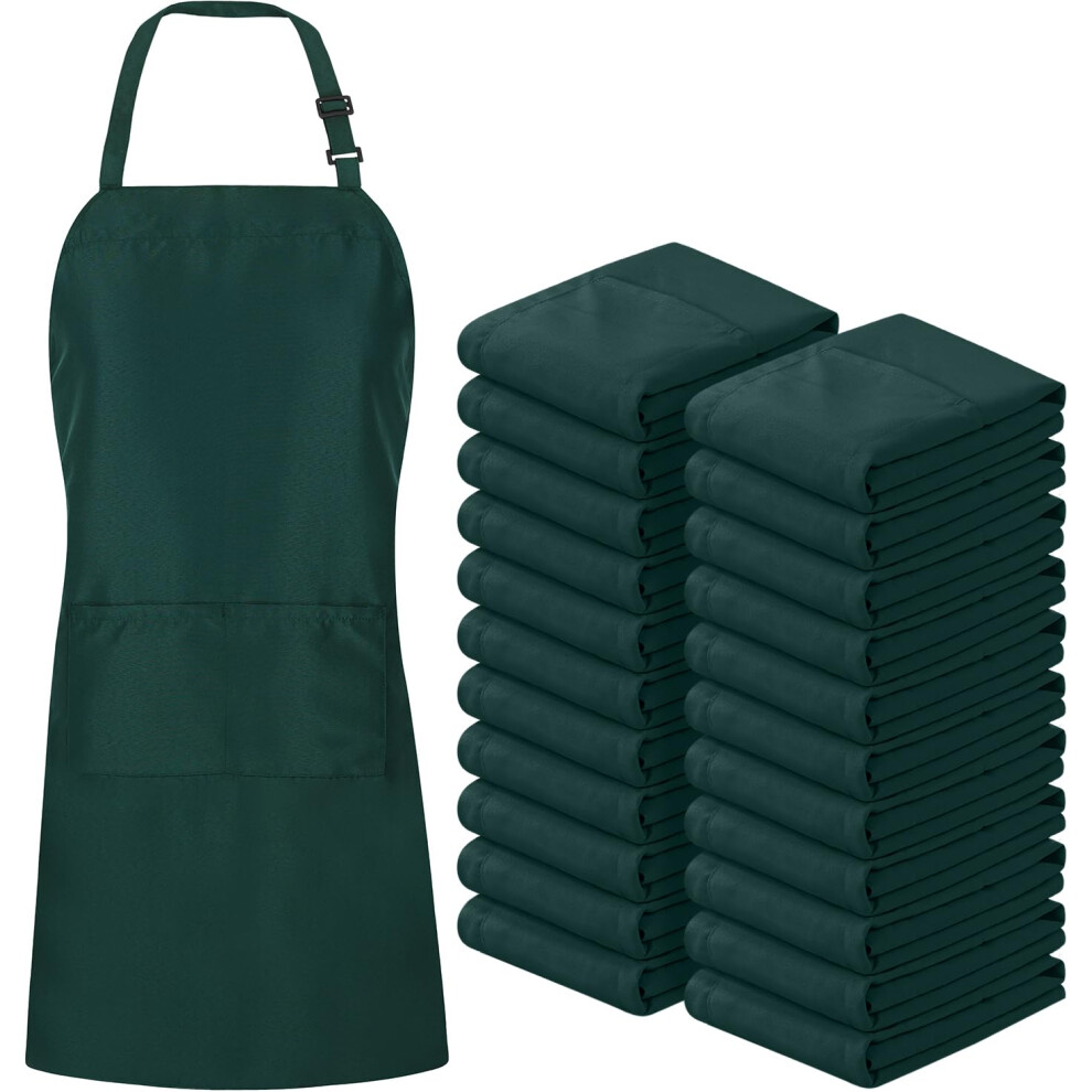 Utopia Kitchen 60 Pack Adjustable Bib Apron with 2 Pockets Waterdrop Resistant Cooking Kitchen Apron for Men, Women with Long Ties (Green)