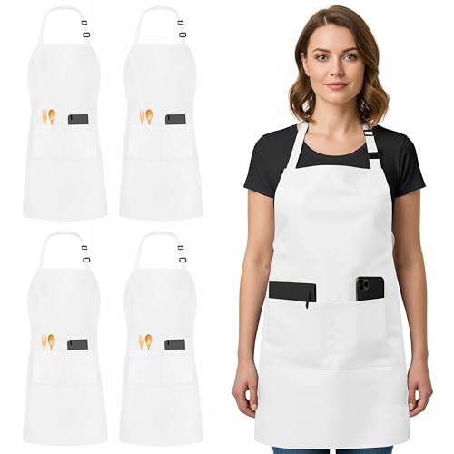 Utopia Kitchen Adjustable Bib Apron (10-Pack) Chef Cooking Kitchen Men Women Waitress Server Work Aprons with Pockets, White, 10 Pack