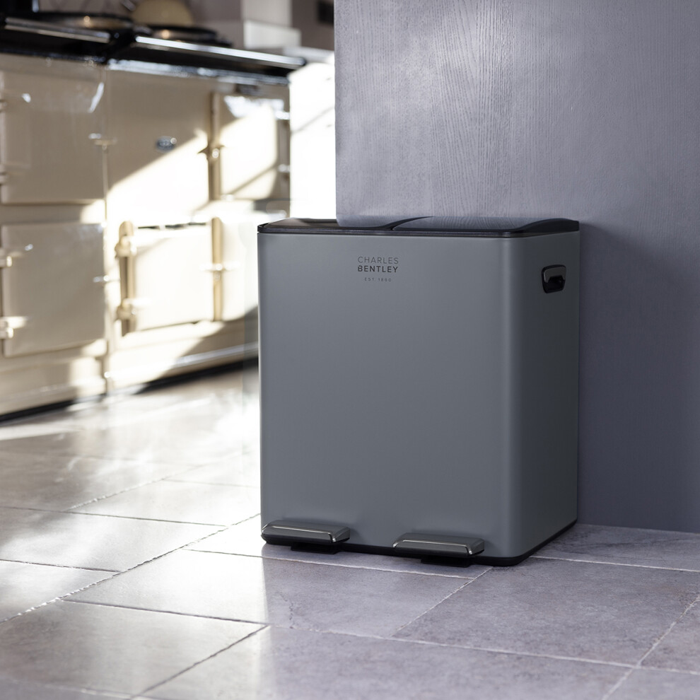 CHARLES BENTLEY Kitchen Bin, 40 Litre, Double Compartment, Grey, Kitchen Bin, Rubbish Bin, Waste Bin, Pedal Bin, Double Bin, Recycling Bins for