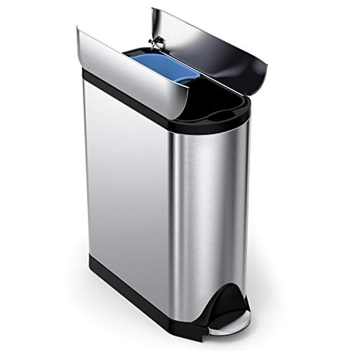 simplehuman 40L (20/20) Slim Butterfly Recycling Double Kitchen Pedal Bin, Strong Steel Pedal, Silent Soft Close Lid, Inner Buckets, Fingerprint-Proof, Brushed Stainless Steel CW2017