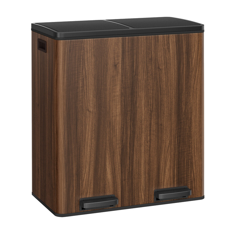 SONGMICSHOME Kitchen Pedal Bin, 2-Compartment Recycling Rubbish Bin with Soft Close Lids, for Home, Removable Inner Buckets, Walnut