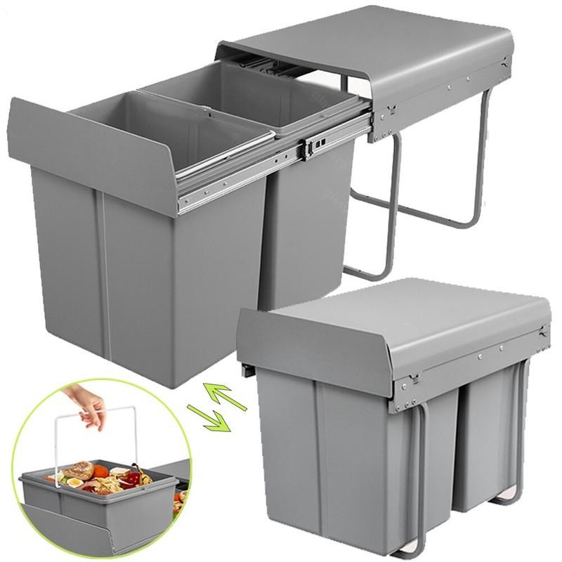 Kitchen Bin Double Rubbish Recycling Container Garbage Cupboard Trash Can