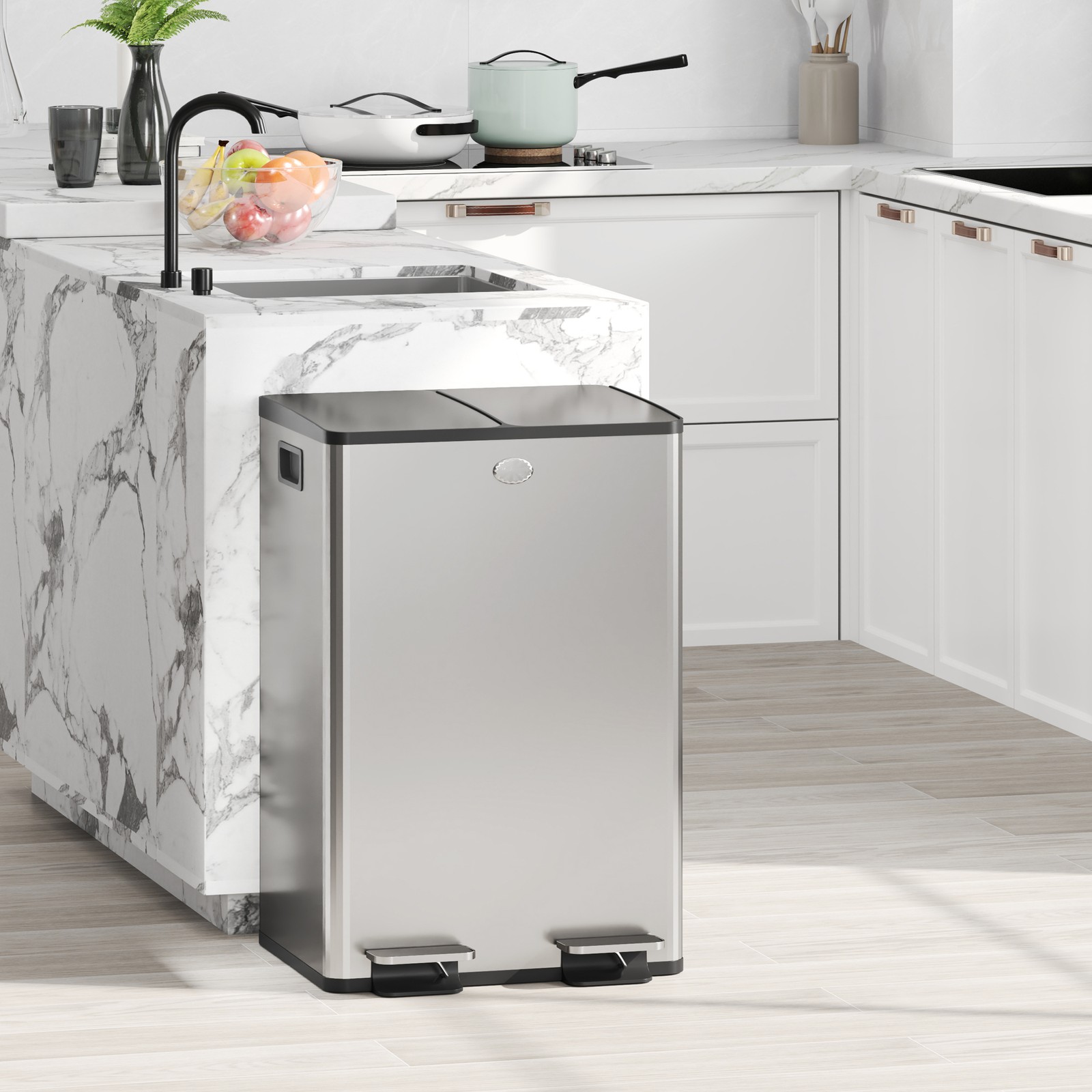 HOMCOM 2 x 28L Dual Kitchen Bin Pedal Bin for Recycling and Waste, Silver