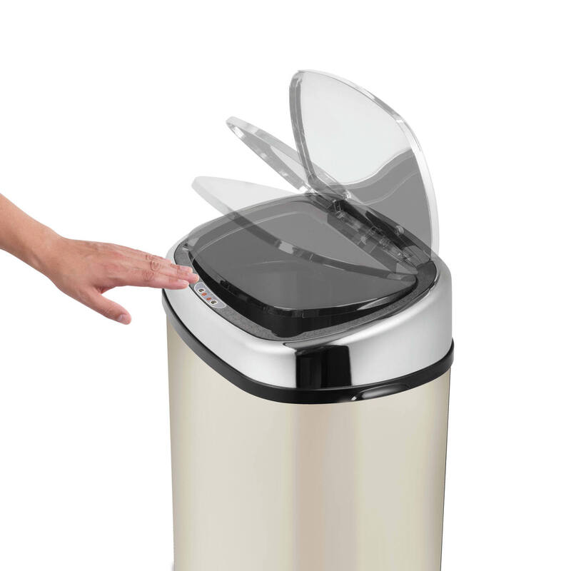 Dihl 45L Iris Cream with Chrome Lid Rectangle Stainless Steel Auto Touchless Hands-Free Sensor Kitchen Waste Dust Bin Automatic Motor