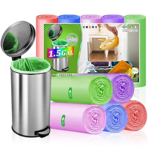 Small Bin Bags 5L Pedal Bin Liners 120 Counts Colorful Trash Bags Thicken, Leakproof Rubbish Bags for Bathroom, Office, Desk, Kitchen Fit UK 5-8 Liter,0.8,1.1 Gal Bins