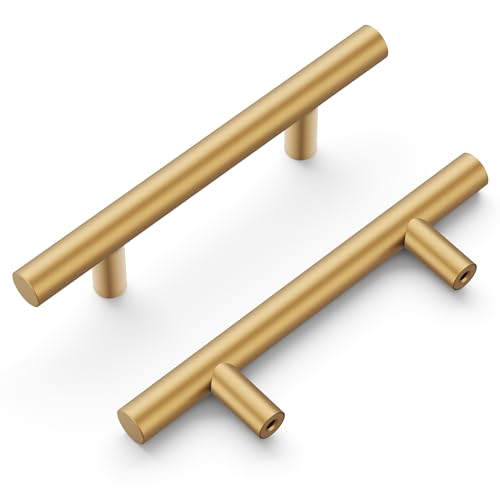 Hickory Hardware 10 Pack Kitchen Cabinet Handles, Drawer Pulls for Doors & Dresser Drawers, Hardware for Bathroom, 3 Inch Hole Center, Brushed Brass, Heritage Collection