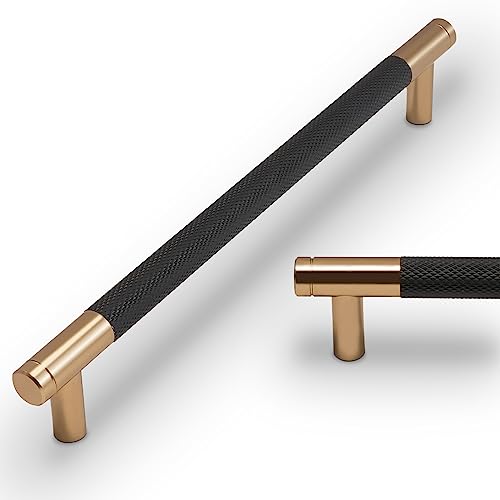 BUKOBYHE 10 Pack 7.5Inch Kitchen Cabinet Handles Black and Champagne Bronze Knurled Cabinet Pulls Black Drawer Pulls Kitchen Hardware Kitchen Handles for Cabinets Cupboard Handles Drawer Handles