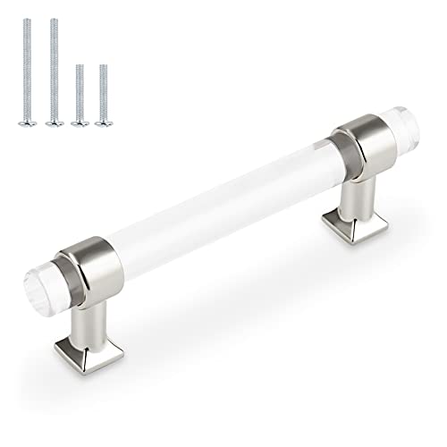 Orger Kitchen Cabinet Handles 10 Pack Silver Chrome Cabinet Pulls Clear Acrylic Handles 4" Hole Centers Dresser Drawer Knobs and Pulls for Bathroom Cabinets