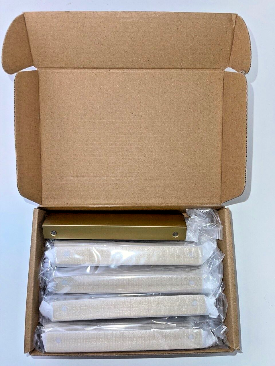 JOOJA 10 Pack Modern Style Finger Edge Pull Furniture DrawerHandles Hidden Cabinet Kitchen Drawer Handles Knobs, Brass, 120mm