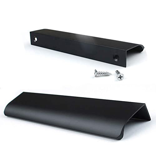 JOOJA 10 Pack Modern Style Finger Edge Pull Furniture DrawerHandles Hidden Cabinet Kitchen Drawer Handles Knobs,Black 150mm