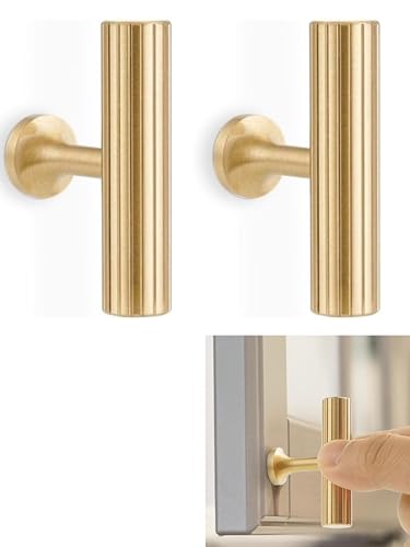 RZDEAL 4 Pack Solid Brass Gold Tone Single Hole 2" Total Length Kitchen Cabinet Handles Modern Drawer Handles Bathroom Brushed Brass Finish