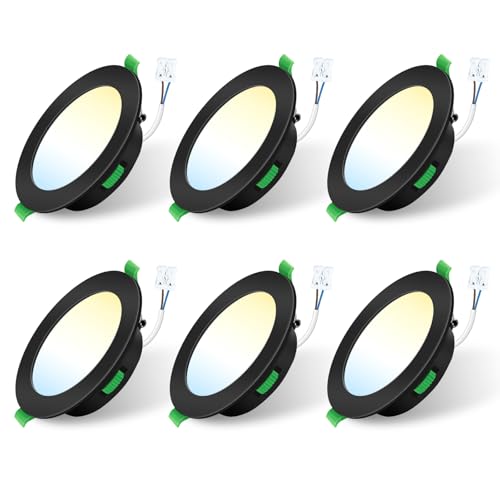 ALUSSO LIGHTING 6 Pack LED Downlights, LED Recessed Ceiling Lights 5W 400LM 230V, 75-85mm Cutout Dimmable,3CCT 3000K 4000K 6500K Adjustable, IP44 Suitable for Bathroom Living Room Kitchen,Black