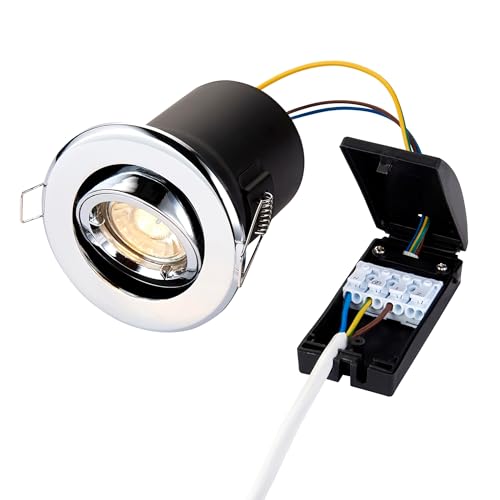 National Lighting Shield Plus Modern Chrome Fire Rated GU10 Dimmable Adjustable Tilt Recessed Ceiling Downlight/Spotlight Ideal for Bedrooms Lounge Kitchen etc.
