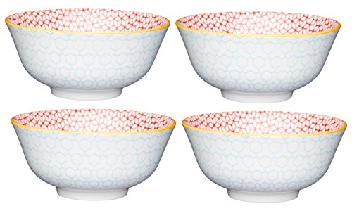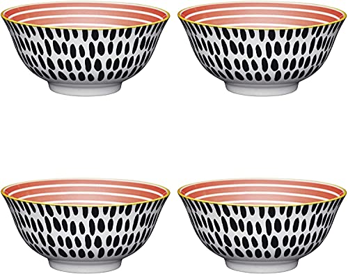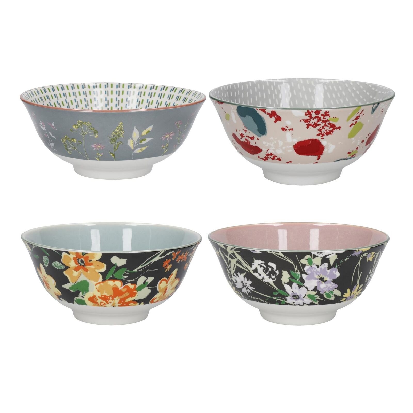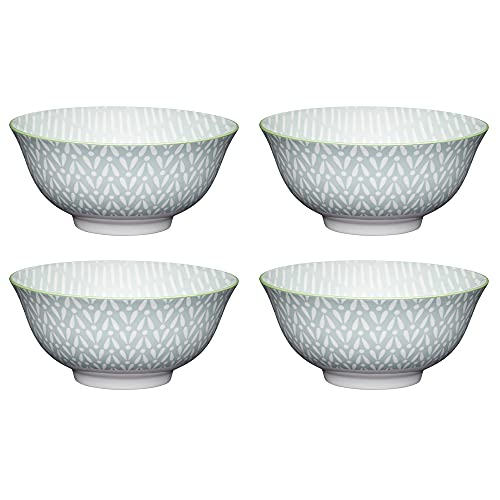 KitchenCraft Patterned Cereal Bowl Set in Gift Box, 4 Ceramic Bowls Ideal for Ice Cream, Soup and More, 'Designed for Life' Designs, 15cm