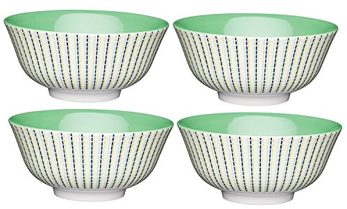 KitchenCraft Ceramic Bowl Set with Brush Stroke Pattern and Stripes, Stoneware, Multi Colour, 15.5 cm, Set of 4 Bowls