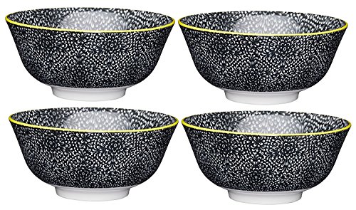 KitchenCraft Patterned Cereal Bowl Set in Gift Box, 4 Ceramic Bowls Ideal for Ice Cream, Soup and More, 'Monochrome' Designs, 15cm