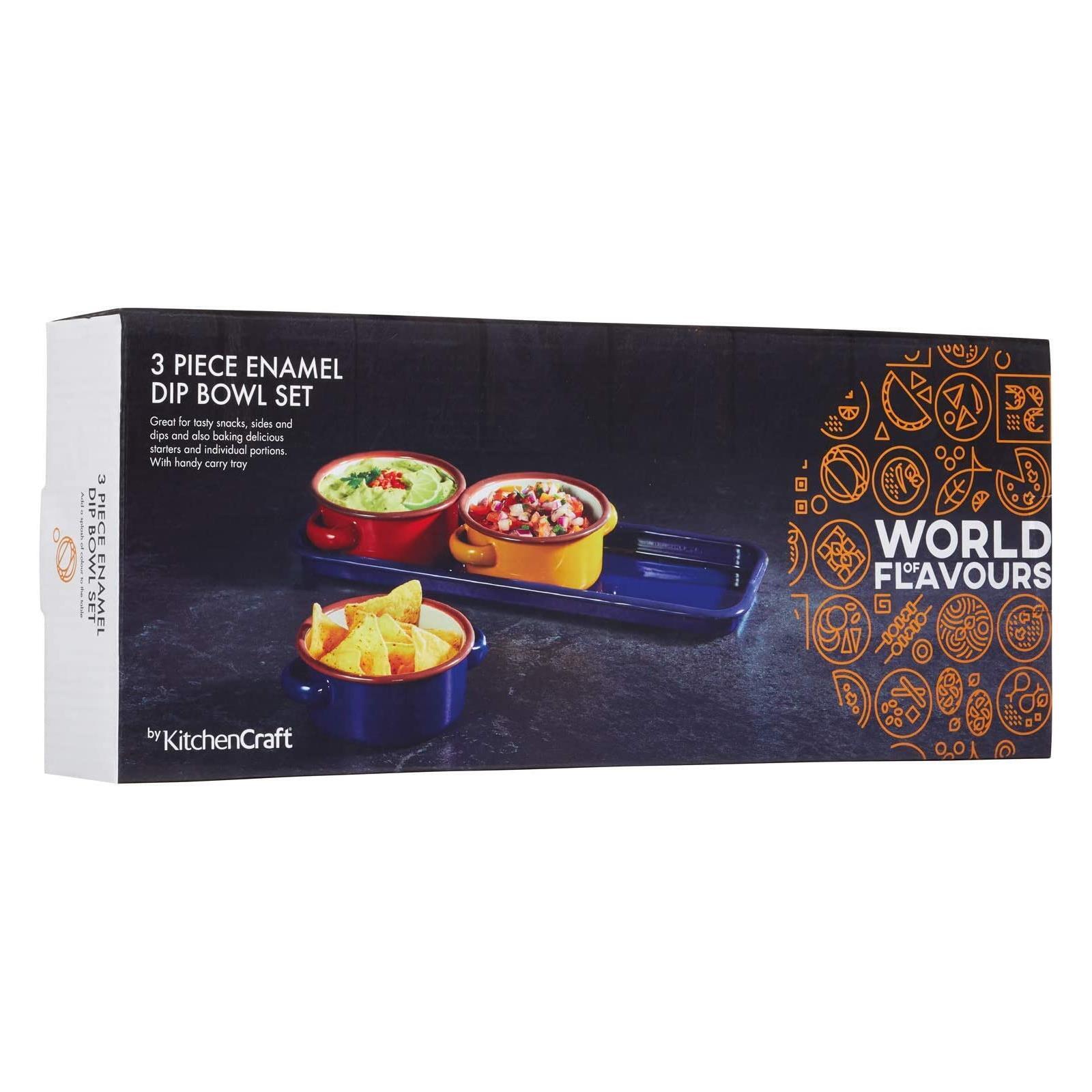 KitchenCraft World of Flavours Tapas Serving Dishes Enamel Dip Bowls & Tray x 3