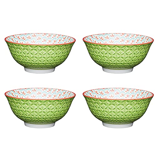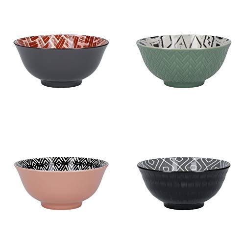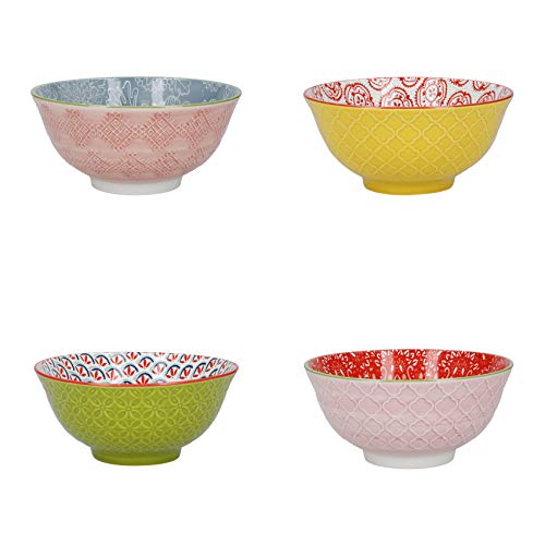 KitchenCraft Ceramic Bowl Set with Embossed / Geometric Pattern, Stoneware, Multi-Colour, 15.5 cm, Set of 4 Bowls