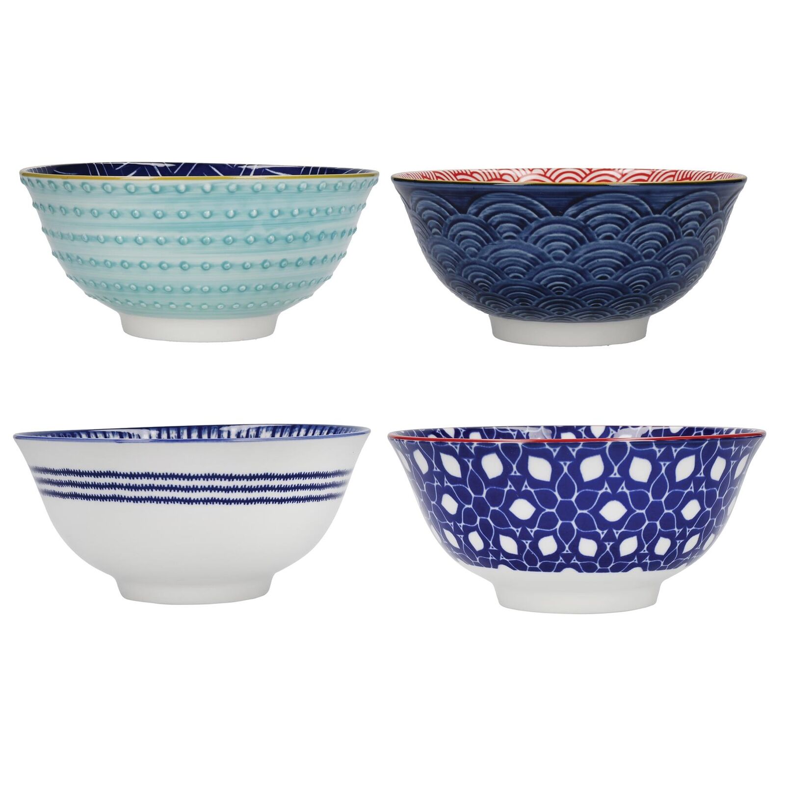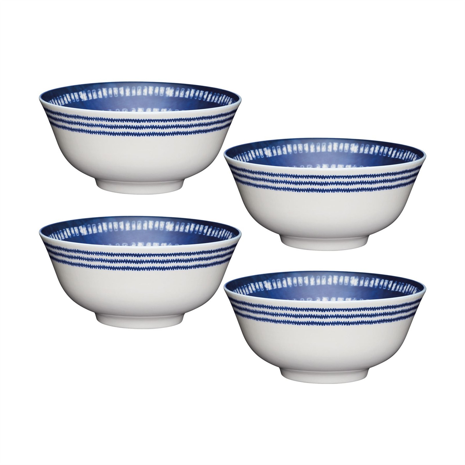 Set of 4 KitchenCraft Blue and White Greek Style Ceramic Bowls