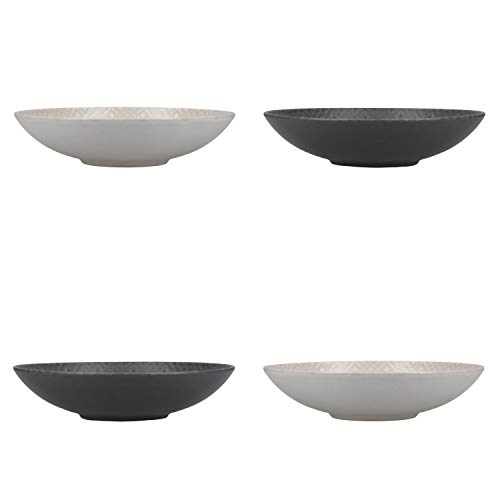 KitchenCraft Pasta Bowls Set of 4 in Gift Box, Ideal for Ramen and Rice, Lead Free Glazed Stoneware, Embossed Light Grey / Dark Grey, 22cm