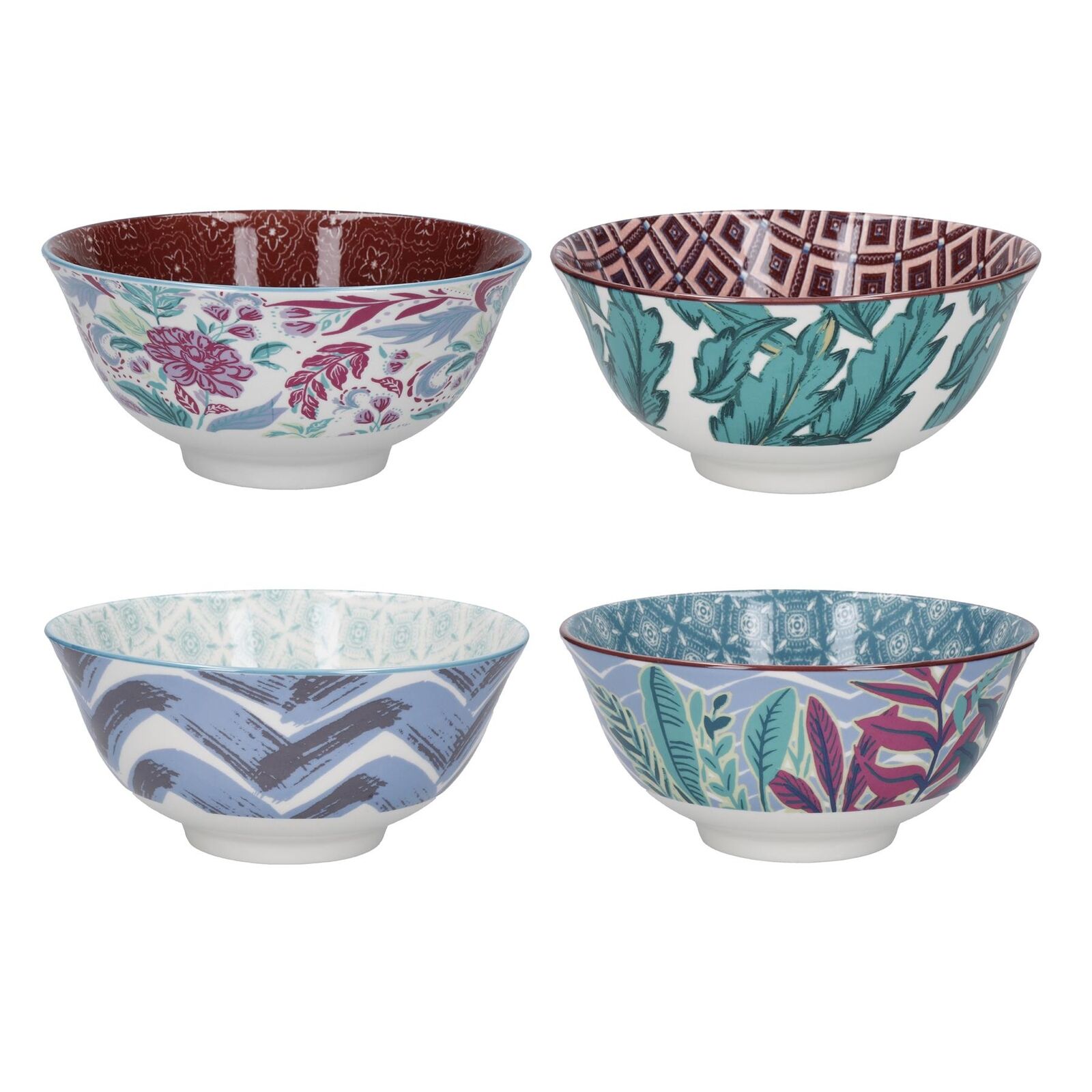 KitchenCraft Patterned Cereal Bowl Set in Gift Box, 4 Ceramic Bowls Ideal for Ice Cream, Soup and More, 'World of Flavours' Designs, 15cm