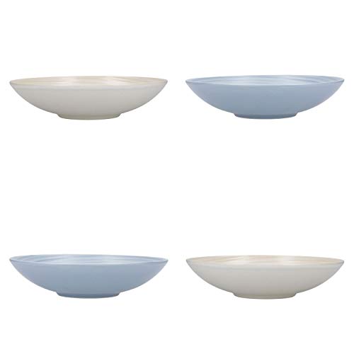 KitchenCraft Idilica Stoneware Pasta Bowls, Set of 4 Ceramic Shallow Dinner Bowls, Microwave and Dishwasher Safe, Assorted Colours