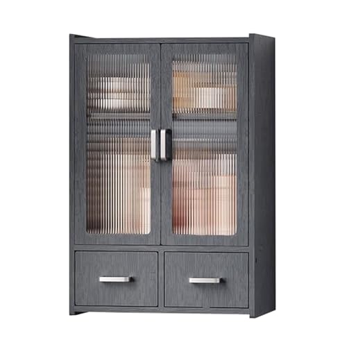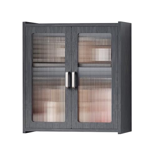 HJZALMI Wall-Mount Storage, Wall Storage Cabinet With Glass Doors, Kitchen Cupboard With Adjustable Shelf, Wood Floating Display Cabinet For Kitchen & Laundry(23.6x25.6x10.1in)