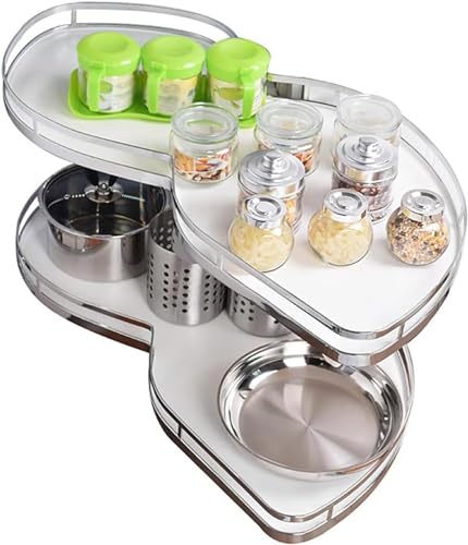 Slide Out Drawer Storage Shelves, 2-Tier Adjustable Swing Pull Out Organizer for Kitchen Cupboard, Carousel Swing Shelf Fits 800mm or 900mm Corner Base Cabinets