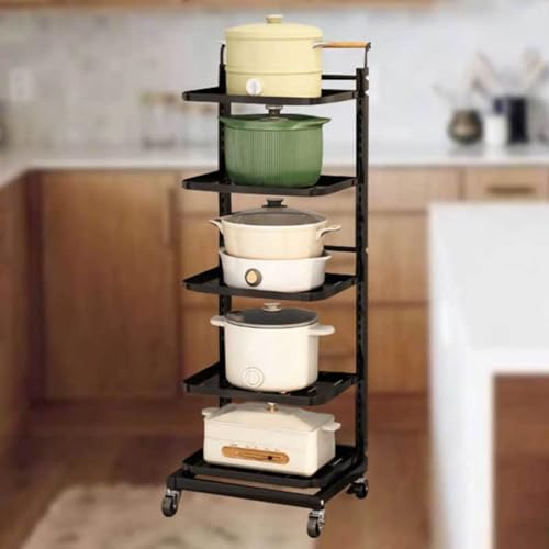 Pan Stand for Cupboard Kitchen Shelf Storage Baskets Saucepan Racks Free Floor Standing Cupboard Organiser Drawers,Black-5 * 5boards