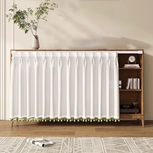 Curtains for Closets Without Doors, Cabinet Curtains for Kitchen Cupboard Shelf, Dishwasher Curtain, Shading and Ventilation, Tassel Decoration, Rod installation(A,300x60cm)