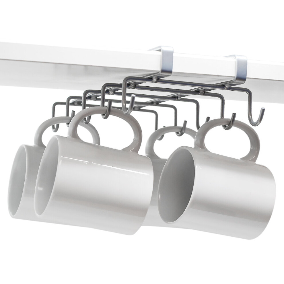 joeji's Kitchen Hanging Mug Holder & Cupboard Organiser - Hooks for up to 10 Coffee Tea Mugs - Under Kitchen Cupboard Shelf - Ideal as Cup Holder or Mug Rack