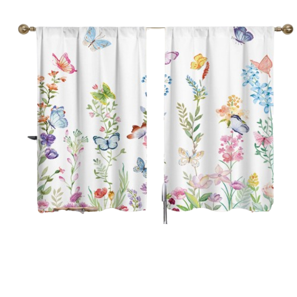 RnemiTe-amo Dealsï¼Curtain Drapes Rod Lift Kitchen And Bathroom Window Curtains, Butterfly Flower Sheer Curtains