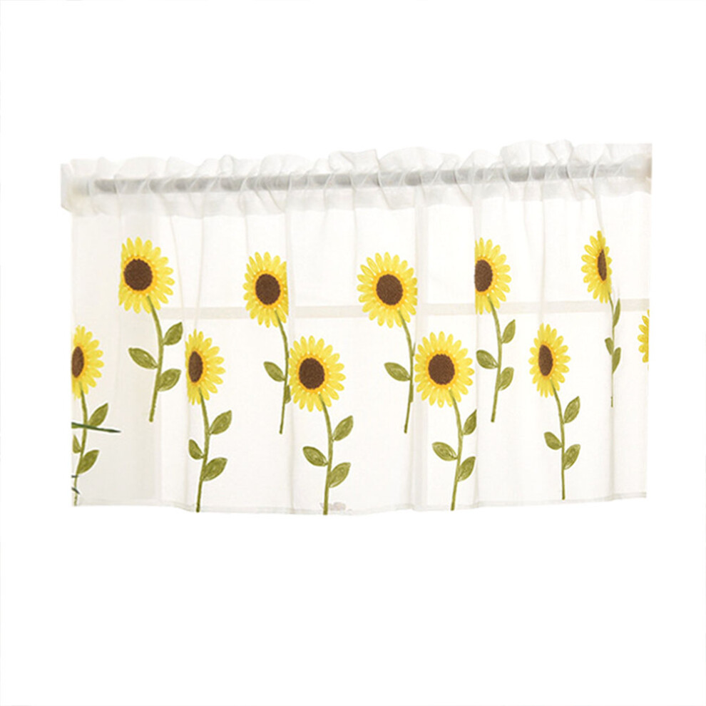 Convenient and Practical Rod Pocket Curtains for Kitchen, Farmhouse Sunflower Valance Vintage Country Style, Polyester Fabric Decorative Drapes for
