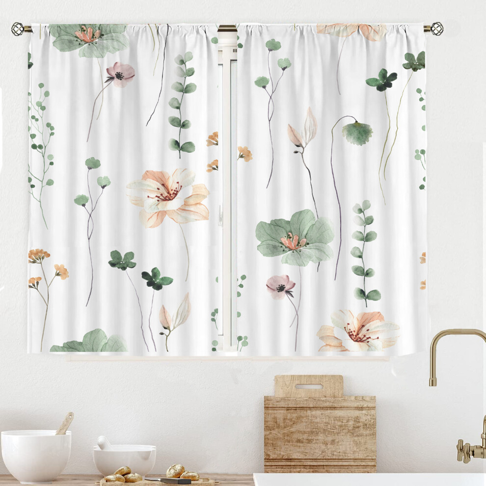 Curtain Set for Living Room, Vintage Kitchen Curtains Soft and Smooth Fabric, Light Filtering Breathable and Airy Window Drapes with Wrinkle