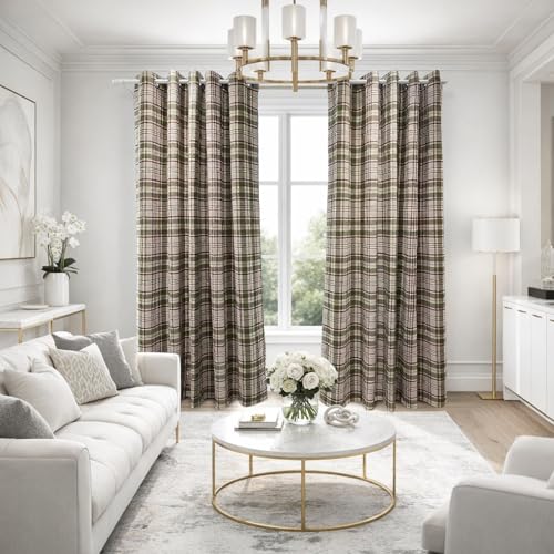 Decorative and Functional Window Curtains for Home, Semi Sheer Buffalo Plaid Gingham Drapes Set, Light Filtering Farmhouse Kitchen Curtains with Rod P