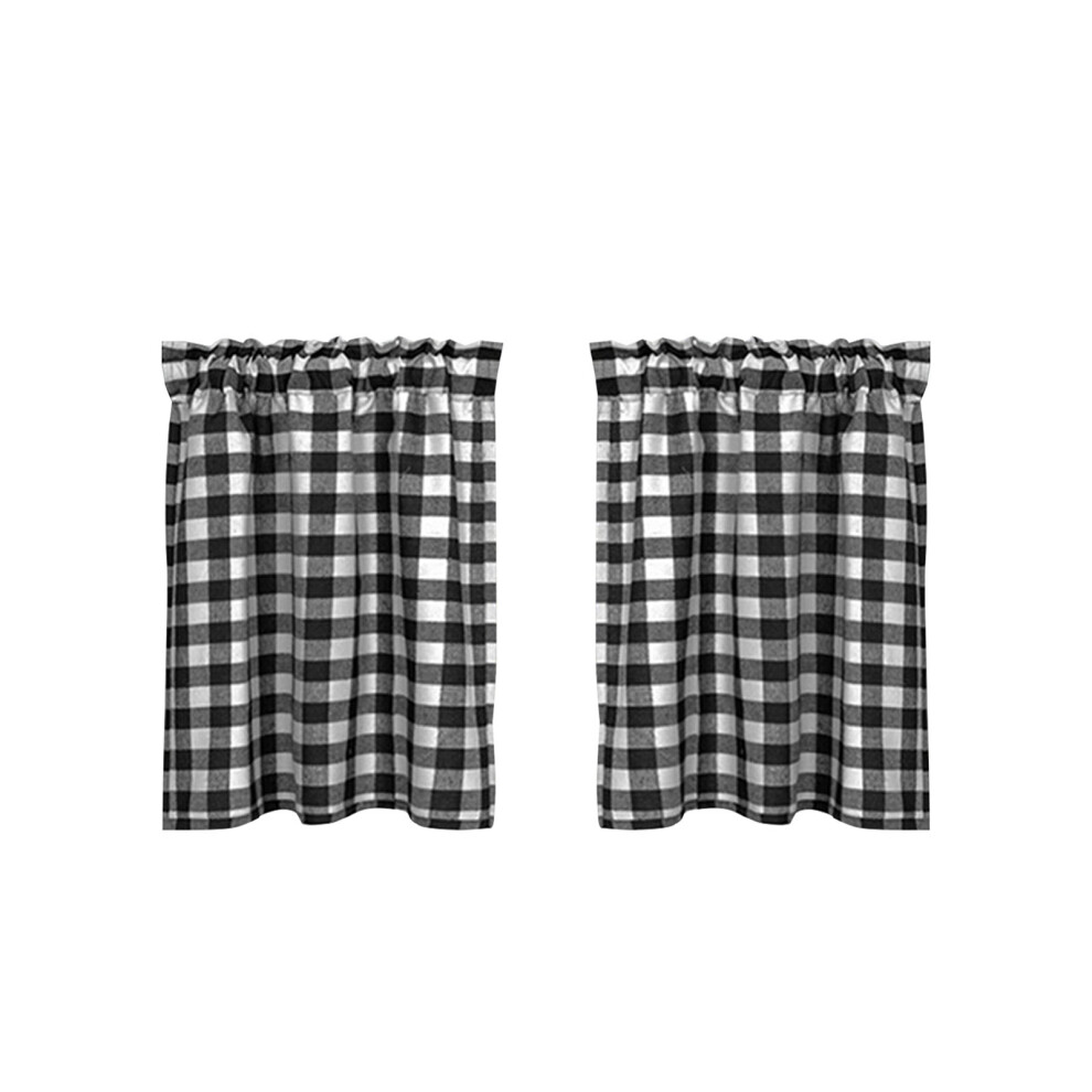 Black and White Buffalo Check Lace Tier Curtains Light Filtering Farmhouse Kitchen Window Drapes 42x24