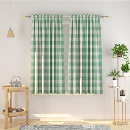 Buffalo Check Curtains 45 inches Length Cotton Basement Mint Green and White Gingham Plaid Kitchen Window Curtain Panels Living Room Checker Drapes Bedroom Rod Pocket Window Treatment 2 Panels
