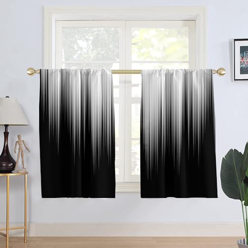 AAtter Black and Grey Window Curtains for Kitchen White Silver Ombre Mens Abstract Gothic Trendy Small Short Home Living Room Bedroom Bathroom Drapes Treatment Fabric 1 Pair, 27.5" W x 45" L, Modern