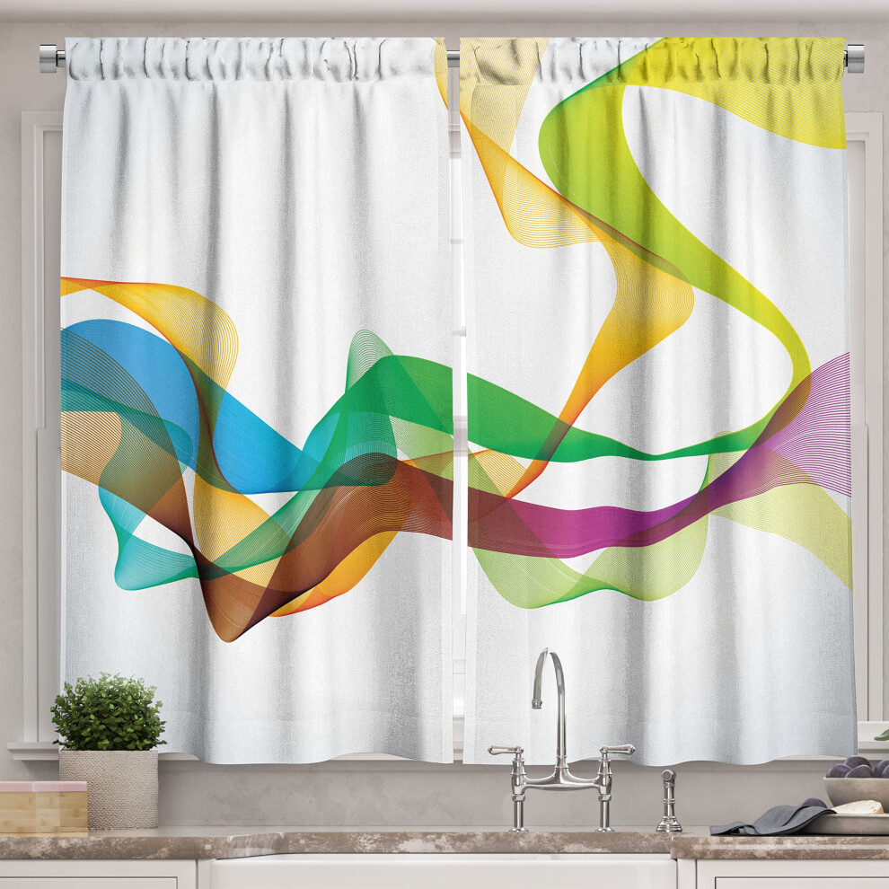Ambesonne Abstract Kitchen Curtains Styled Wavy Ribbon Line and Smoked Rainbow Like Cool Graphic Artwork Window Drapes 2 Panel Set for Kitchen Cafe