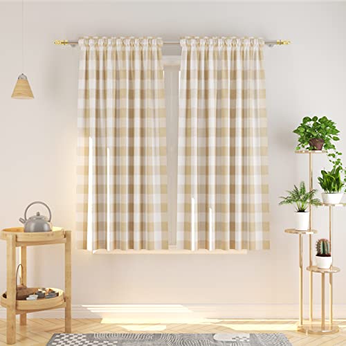 NATUS WEAVER Buffalo Check Curtains 54 inches Long Cotton Basement Beige and White Gingham Plaid Kitchen Window Panels Living Room Checker Drapes Bedroom Rod Pocket Window Treatment 2 Panels