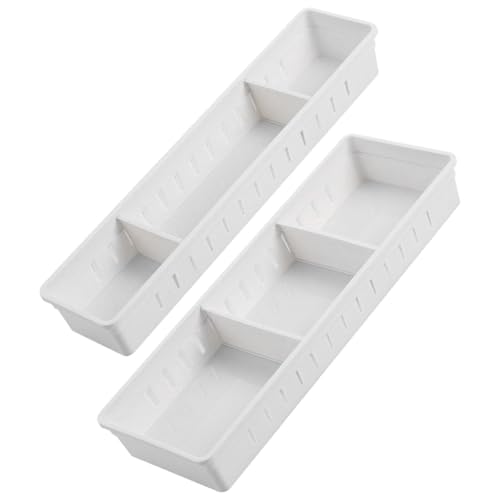 TOVINANNA 2pcs Compartments Drawer Organizer for Kitchen Desk White Sorting Storage Box Dividers for Cosmetics and Flatware Layout
