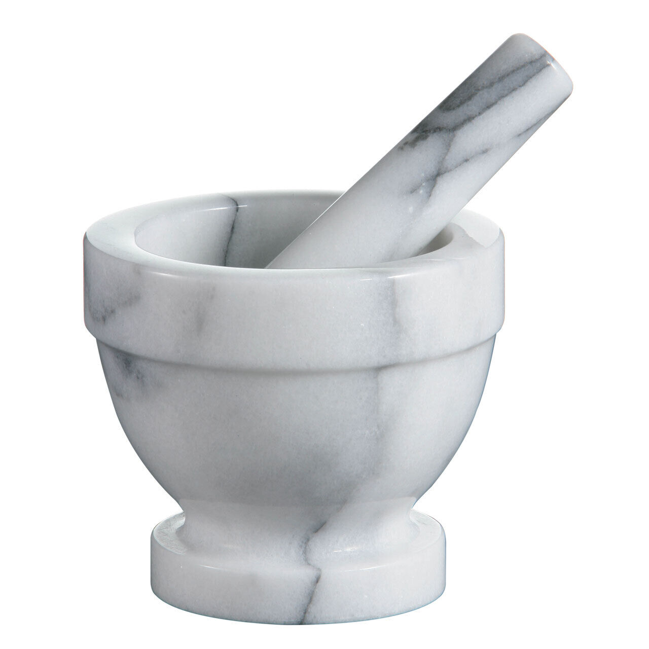 White Marble Mortar and Pestle Hand Crusher Kitchen Spices Herbs Grinder Mixing