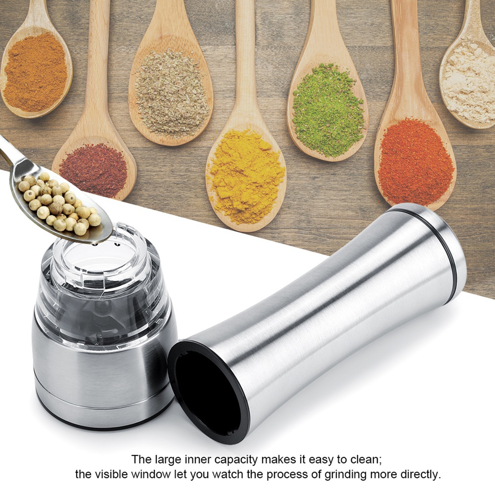 Stainless Steel & Acrylic Manual Salt & Pepper Mill Grinder Kitchen Cooking HEN