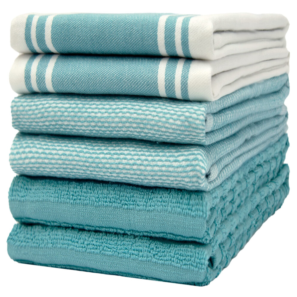 Premium Kitchen Towels (20”x 28”, 6 Pack) – Large Cotton Kitchen Hand Towels – Flat & Terry Towel – Highly Absorbent Tea Towels Set with Hanging Loop (Aqua)